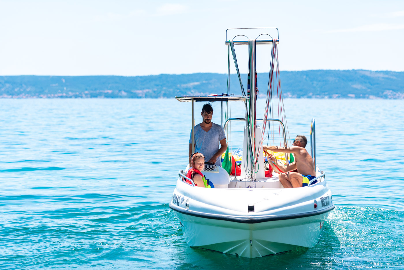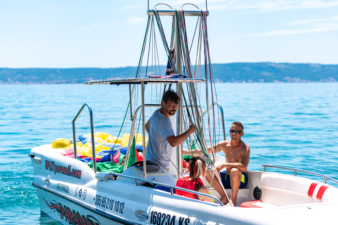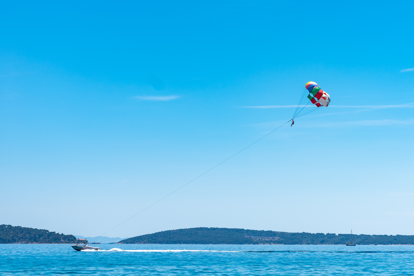 Parasailing is one of the most popular activities! Feel free like a bird and enjoy the wonderful view on Kastela and Split. Share this with your company, up to 4 persons per fly. Enjoy beautiful view over the Adriatic Sea and Kastela Riviera with our special big mini parachute. (240kg maximum)